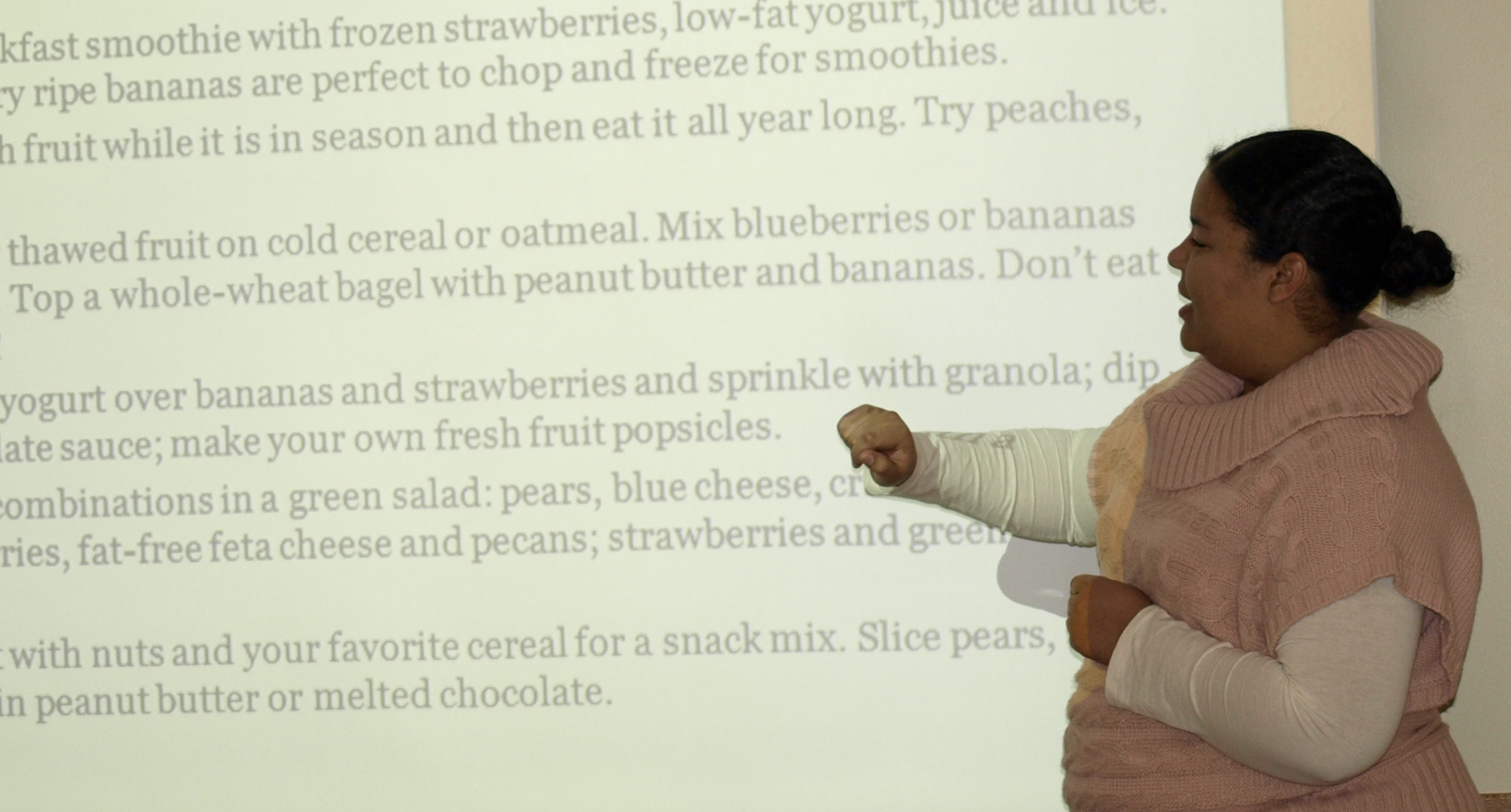 Students were introduced to menu planning, portion control and identifying healthy lunches and snacks. Tips about what kinds of foods you should be eating and how many meals one person should eat per day were also given.