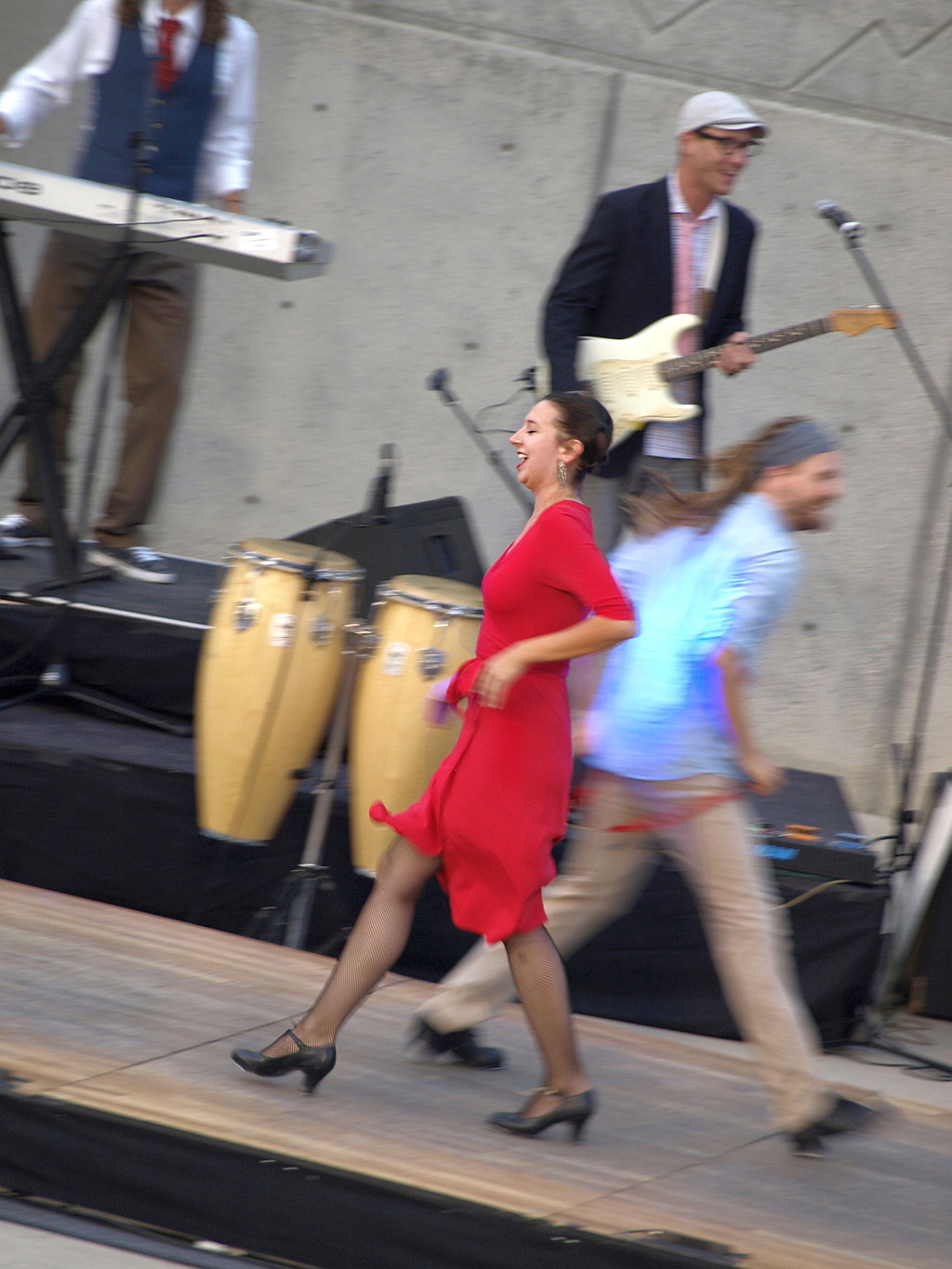 Kaleena Miller, the only female in the entire ensemble, rocks out in her red dress. (Kim Higley)
