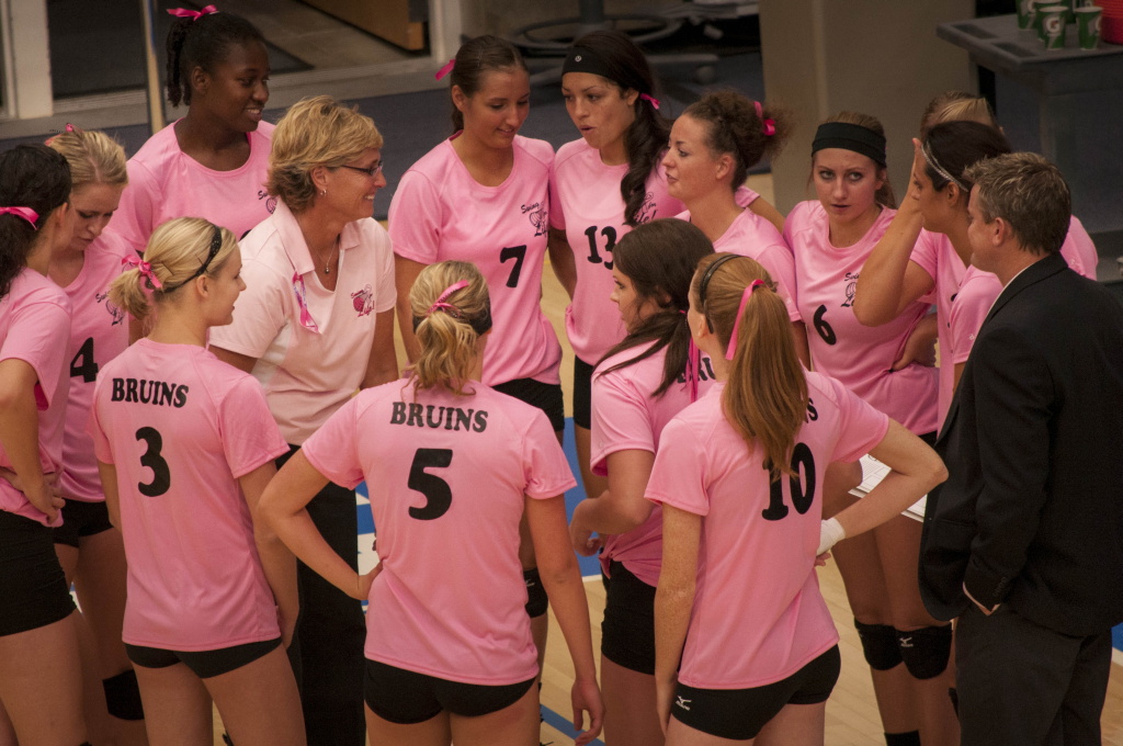 In front of their fans also clad in pink, the Lady Bruins started slowly but closed out CNCC in three games, winning 25-14, 25-12 and finally 25-8.