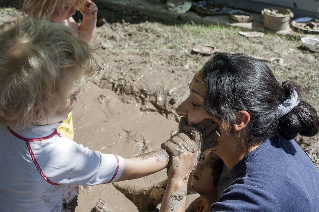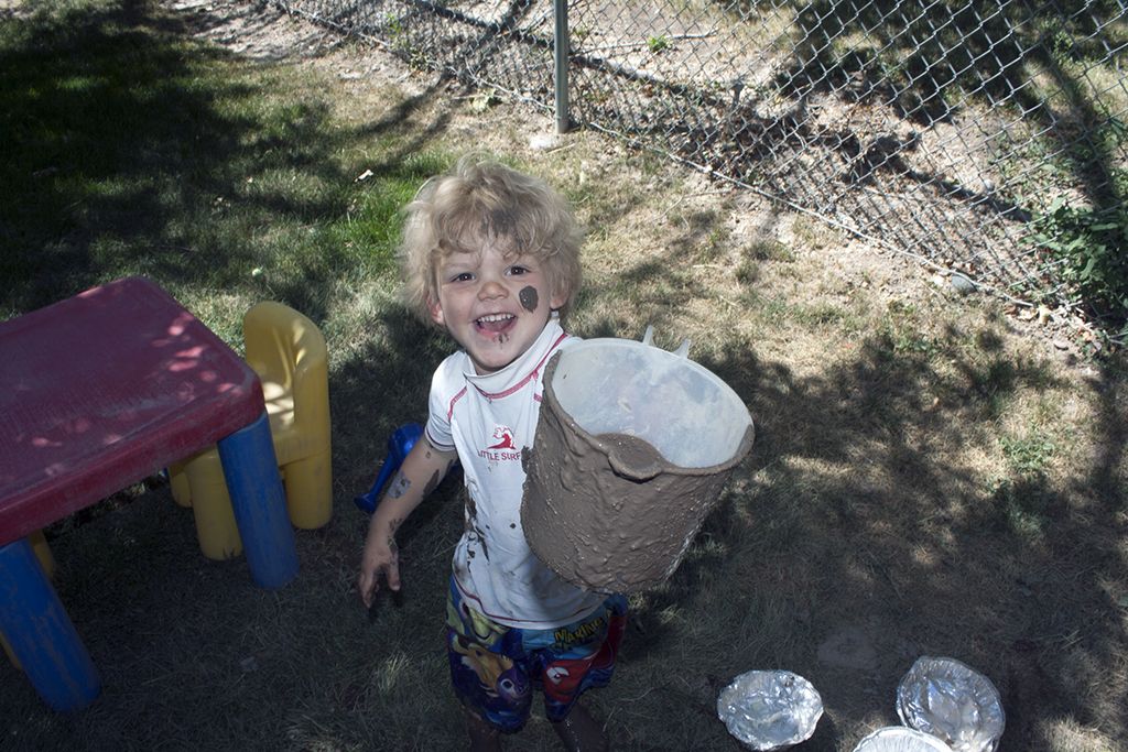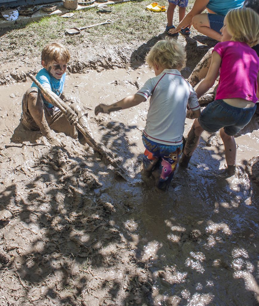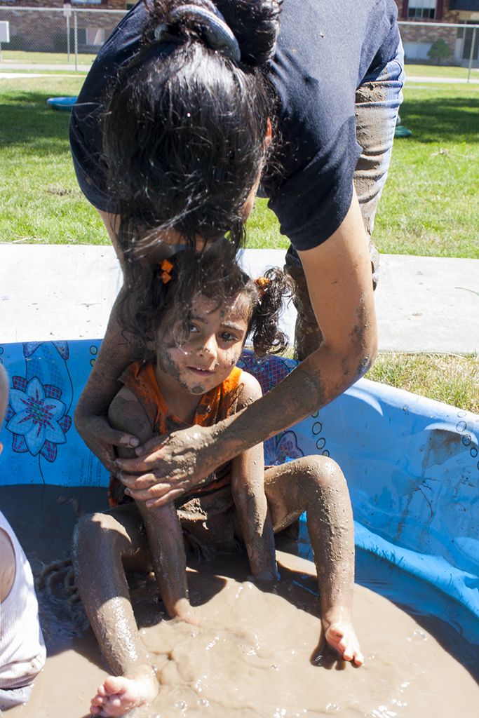 Several children, parents and caregivers joined in on the fun and got down and dirty in the name of education. There were sprinklers, mud, a pool in which to wash off and a pool of clean mud that comprised of toilet paper, shaved ivory soap and water. There was also a play kitchen where children could make mud pies.