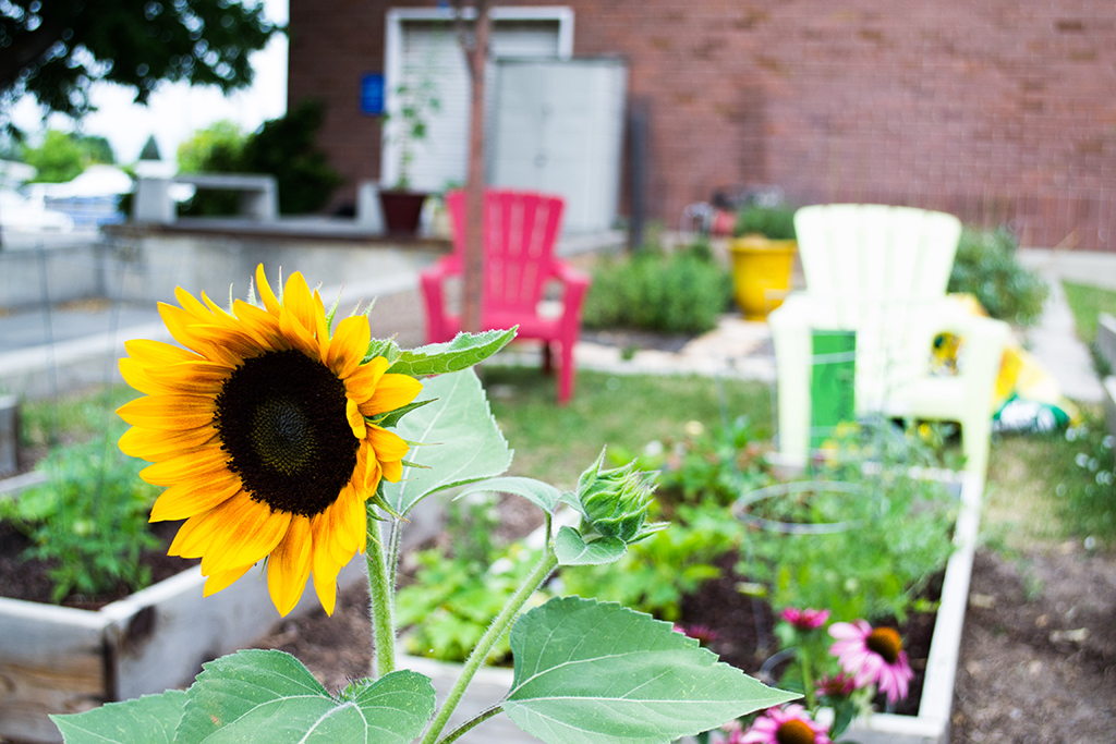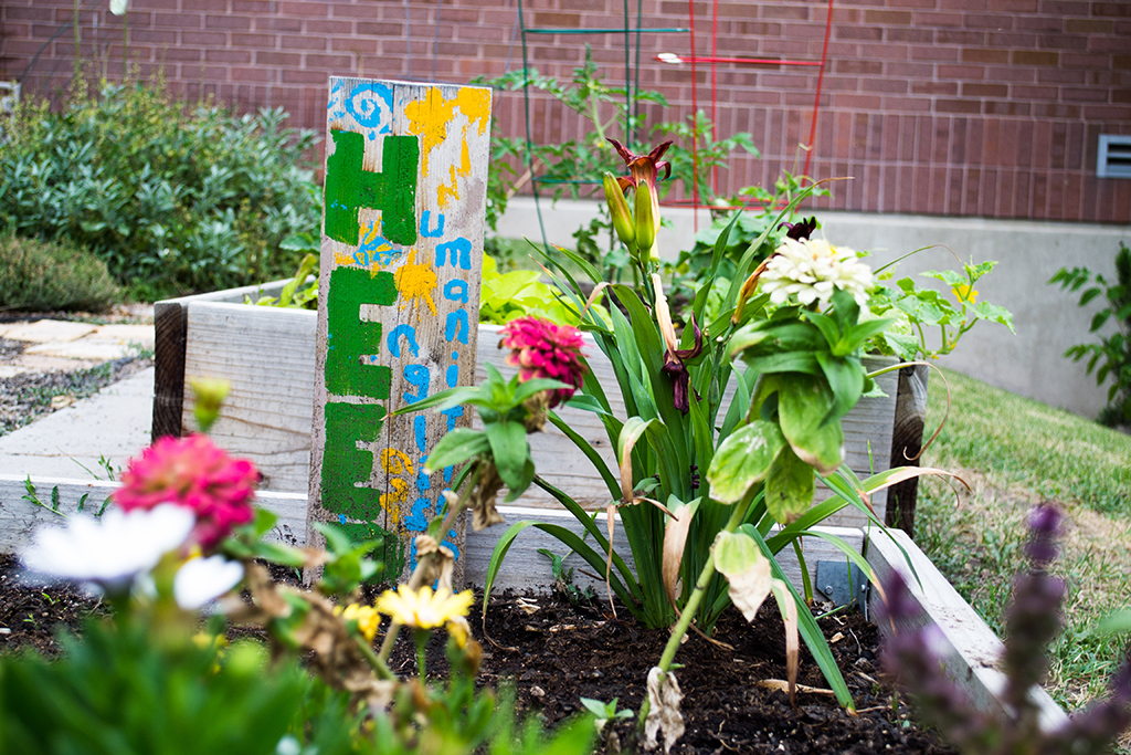 Beyond food production, the gardens create a great segue for faculty and staff to get out of the office to water and weed during a therapeutic break-time. People from all over show up and get to know one another while they garden together. It creates a great sense of community, and often people walking by will stop and visit as well.