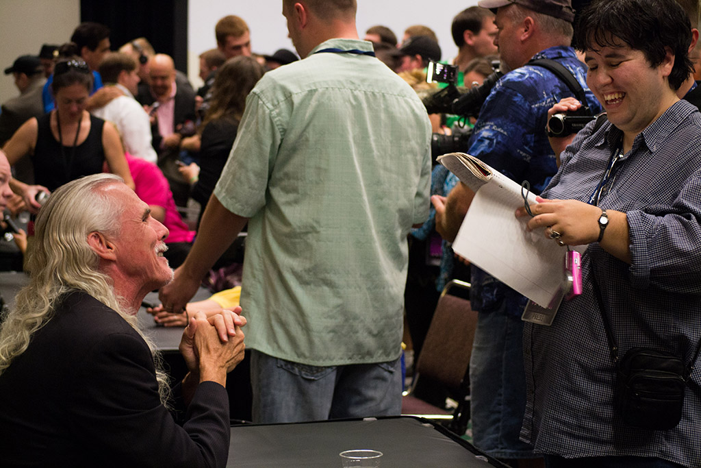 Richard Hatch (front) and Noah Hathaway take questions from the press during Salt Lake Comic Con 2013. (James Nguyen)