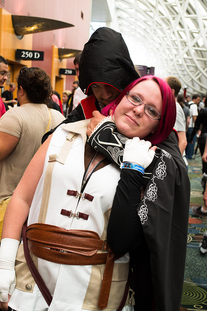 James Southland (Ezio, “Assassin’s Creed”) uses his assassin skills on Sami Edwards (Lighting, “Final Fantasy XIII”) at Salt Lake Comic Con 2013. (James Nguyen)