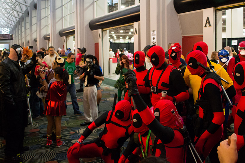 An even larger group of Deadpools pose for a photo at Salt Lake Comic Con 2013. (James Nguyen)