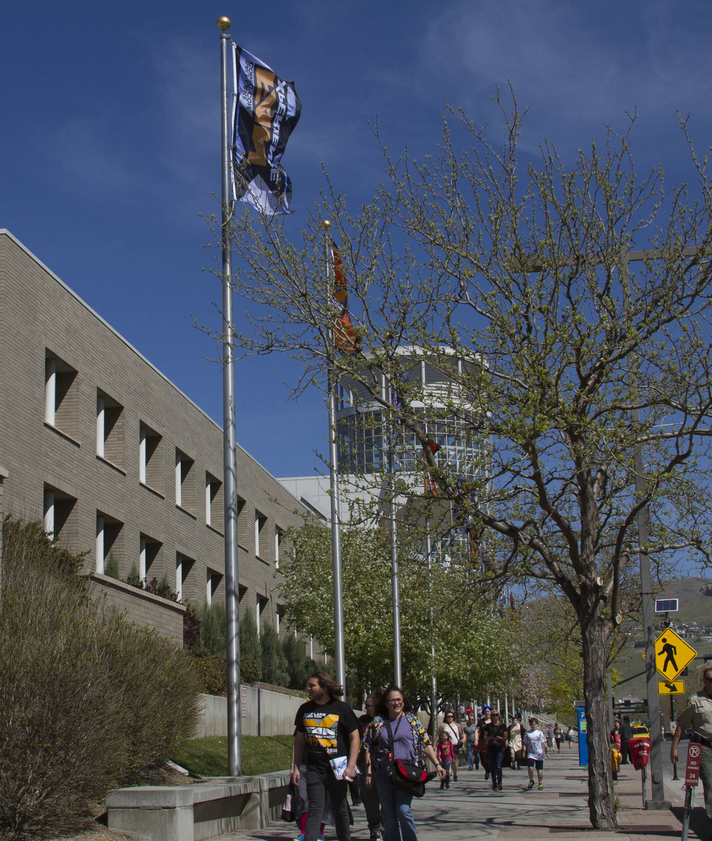 Comic Con Flags fly high outside the Salt Palace for FanX 2014 in Salt Lake City. (Jimmie Breedlove)