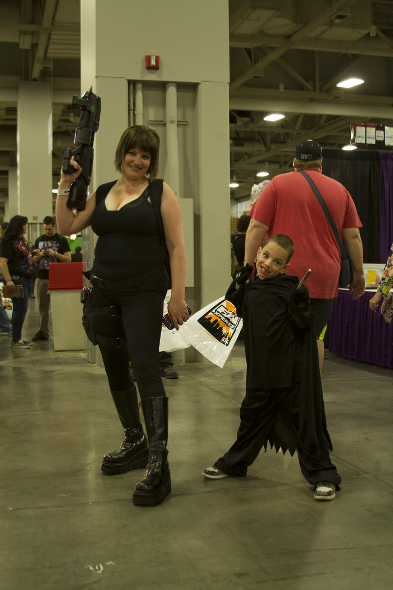 Aeyn Sun dresses as Farscape: Peacekeeper while her son, Robert Sun, dresses as A Death Ear (Robert said he wanted to be evil) for FanX 2014 in Salt Lake City. (Jimmie Breedlove)