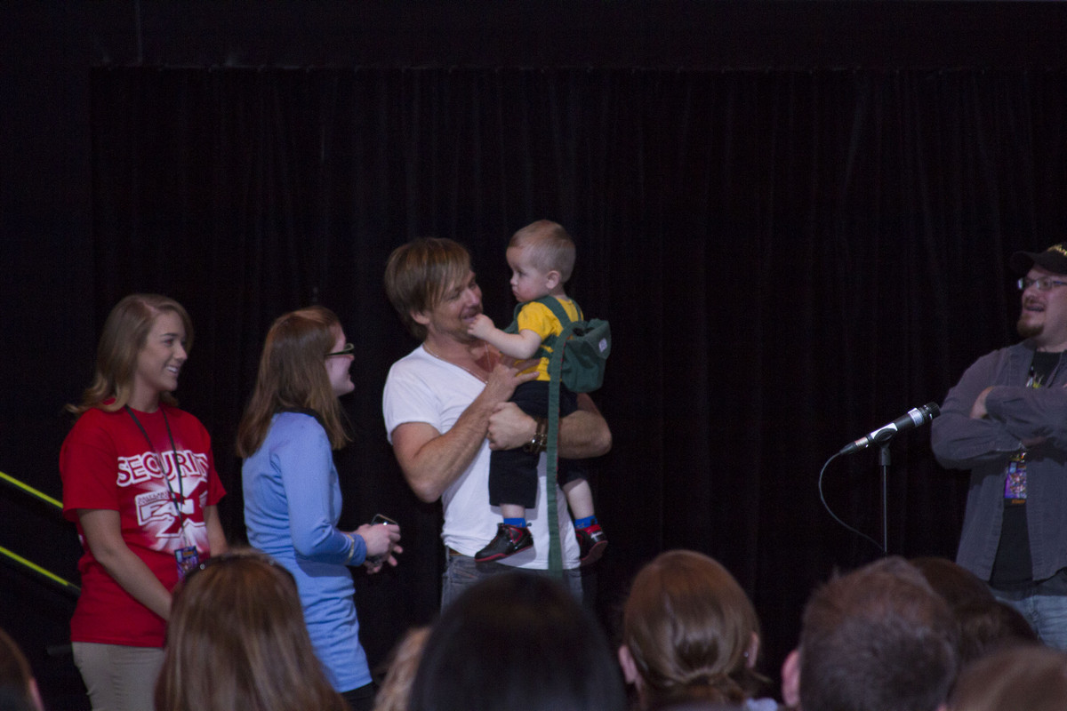 Sean Patrick Flannery from ‘Boondock Saints’ hugs a fan’s child at FanX 2014 in Salt Lake City (Jimmie Breedlove)