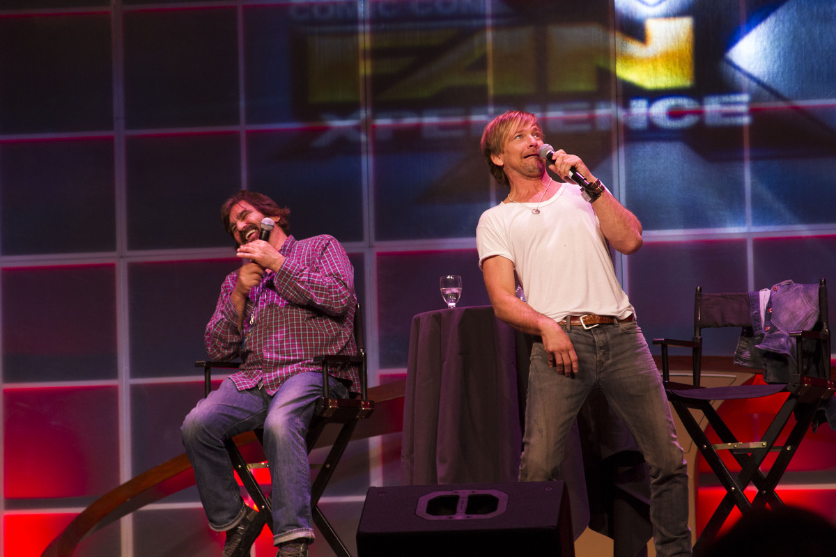 Sean Patrick Flanery, right, and David Della Rocco tell joke during their panel at FanX 2014 in Salt Lake City. (Jimmie Breedlove)