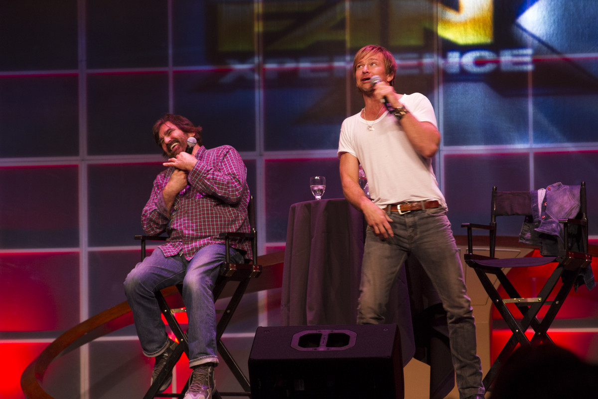 Sean Patrick Flanery, right, and David Della Rocco tell a joke during their panel at FanX 2014 in Salt Lake City. (Jimmie Breedlove)