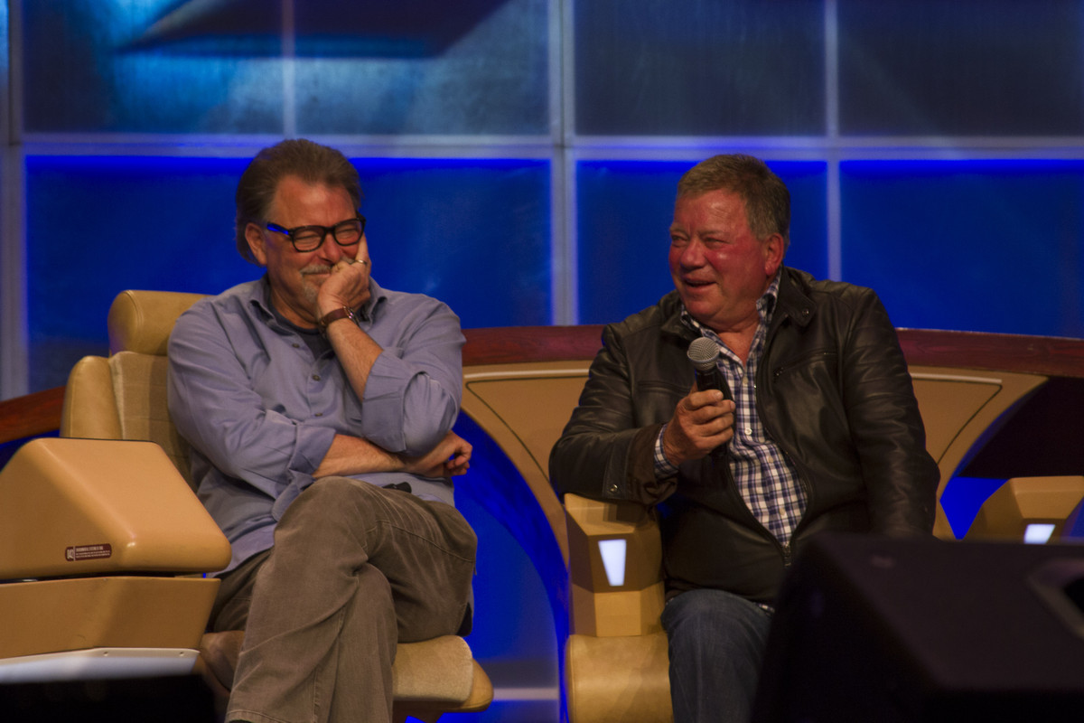 William Shatner (Capt. Kirk, original “Star Trek”) and Jonathan Franks (Commander William T. Riker, “Star Trek: The Next Generation”) speak at a Q&A panel at FanX in Salt Lake City. (Jimmie Breedlove)