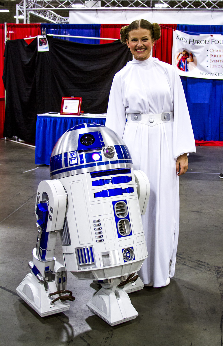 Noelle Dobyns (Princess Leah) from Pleasent Grove stands with R2-D2 at FanX 2014 in Salt Lake City. (Jimmie Breedlove)