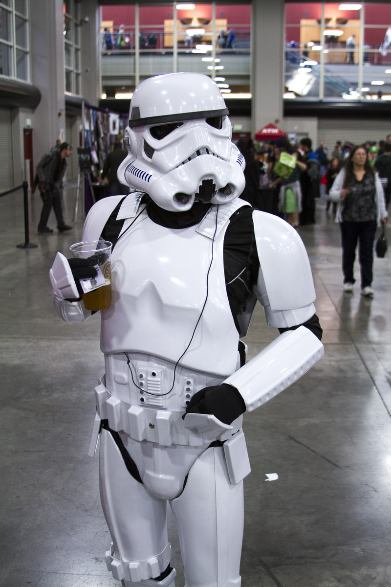 A Storm Trooper quenches their thirst at FanX 2014 in Salt Lake City. (Jimmie Breedlove)