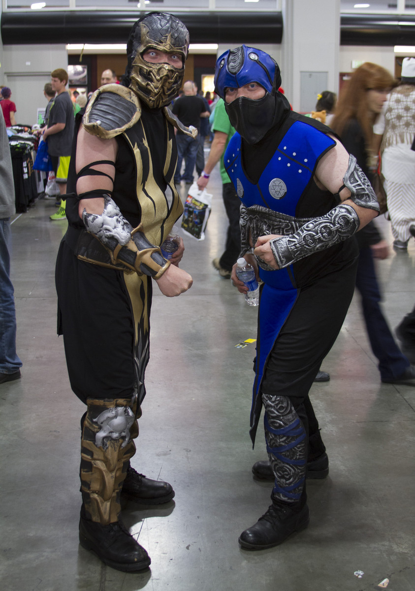 Brothers Sam and Brandon Nielsen dress as Scorpion (left) and Sub-Zero from “Mortal Kombat” series for FanX on April 18. (Jimmie Breedlove)
