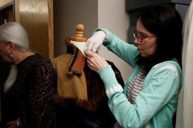All pieces are positioned upon a dress form to be inspected, photographed and recorded into a spreadsheet. Handling the items with care is of the utmost importance.