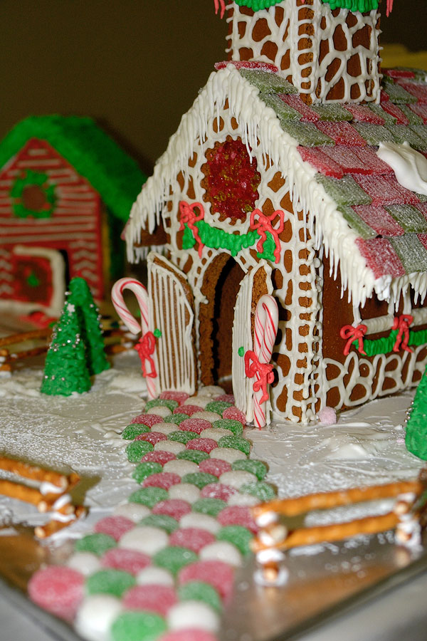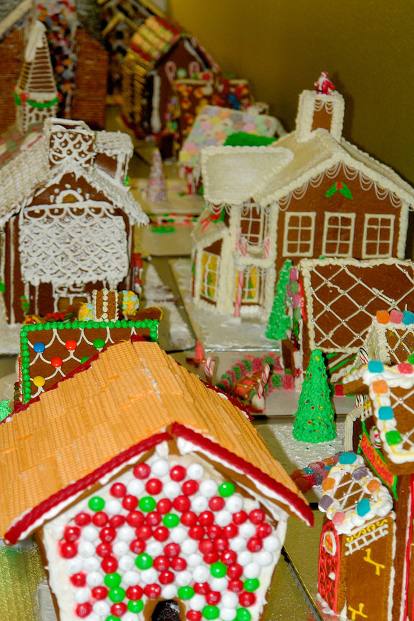 Some SLCC gingerbread houses have extras like snow frosting on the ground and candy pathways. (Guadalupe S. Rodriguez)