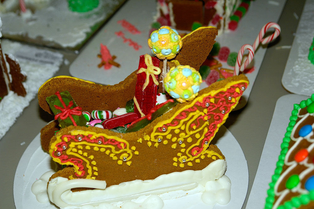 A candy sleigh sits on display in the SLCC gingerbread village at Wellington Senior Center. All gingerbread creations will be auctioned off Dec. 10 to benefit the Cancer Wellness House. (Guadalupe S. Rodriguez)