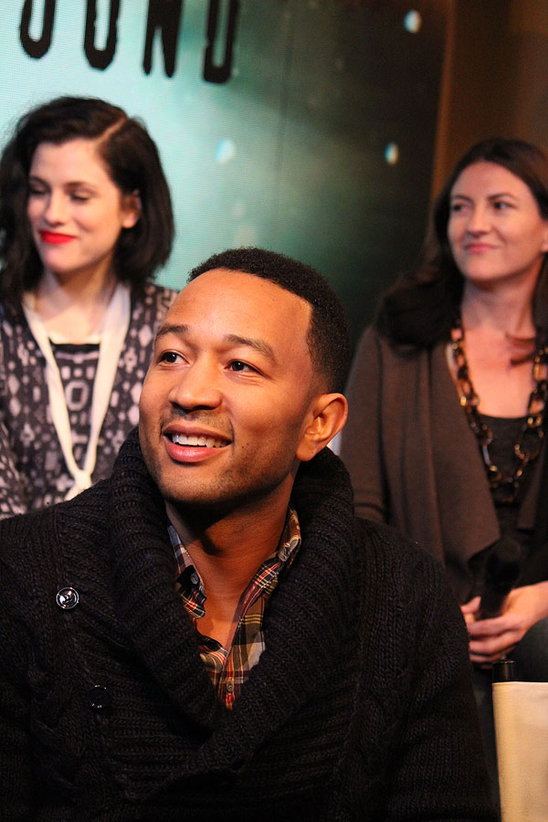Music mogul and “Underground” executive producer John Legend speaks at Sundance Film Fest ’16 about the new WGN series. Also pictured: acrtess Jessica de Gouw, left, and producer Tory Tunnell, right. (Tamara Brune-Wharton)