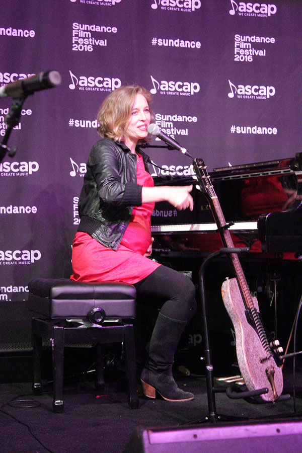 Singer-songwriter Tift Merritt jokes about being a pregnant performer during her set in the ASCAP Cafe (American Society of Composers, Authors and Publishers) at Sundance Film Fest ’16 in Park City. (Tamara Brune-Wharton)