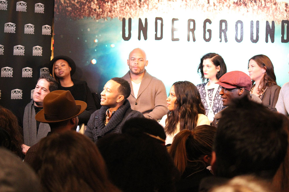 The “Underground” cast speaks at Sundance Film Fest ’16 with executive producer John Legend (front row, second from left) in Park City. (Tamara Brune-Wharton)