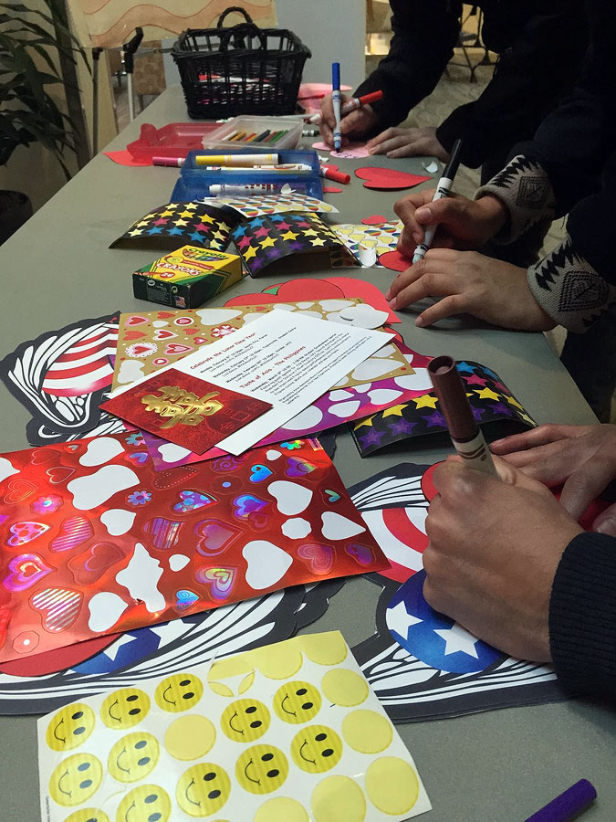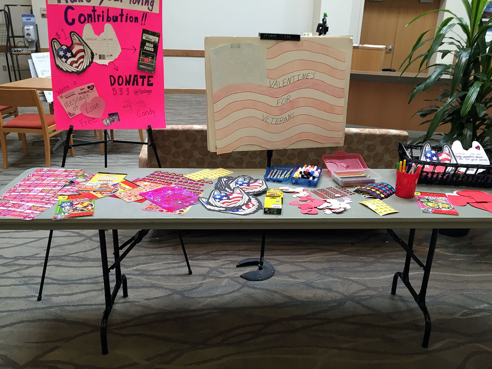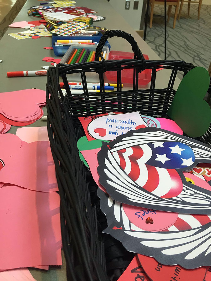 “You don’t have to write a novel,” says Veterans Services specialist Alicia Pia. “You can write something as simple as ‘Happy V-Day’. It works. They pretty much appreciate anything they can get.”