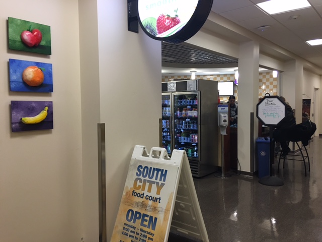 South City Campus offers three different food stations offering breakfast, lunch and hot foods such as burgers and pizza. They have a grab-and-go for sandwiches and pick-up foods at the South Side Express convenient store.