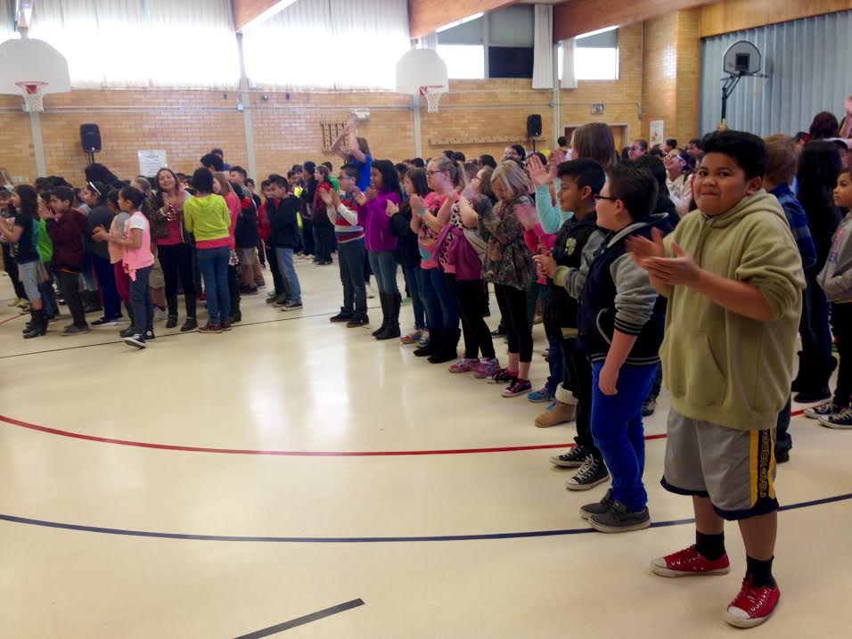 Energy and laughter filled the gymnasium within minutes as student-athletes, teachers and 500 elementary students all joined together in a dance party, performing the Macarena and the electric slide and singing along to “Who let the dogs out?”
