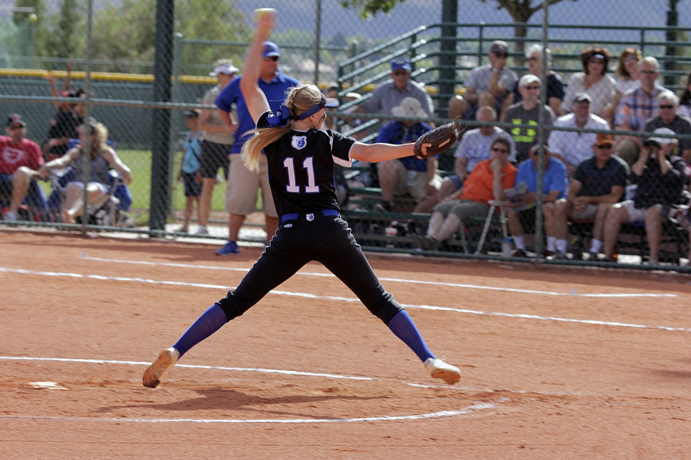 SLCC pitcher Kylie Everill winds up to throw during a second-round NJCAA tournament game against Northeastern Oklahoma A&M on Friday, May 19. (EJ Kirschner)