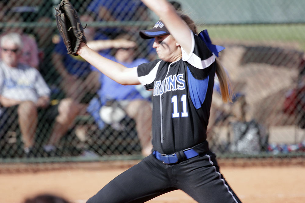 SLCC pitcher Lauren Frailey throws toward home plate during a second-round NJCAA tournament game against Northeastern Oklahoma A&M on Friday, May 19. (EJ Kirschner)