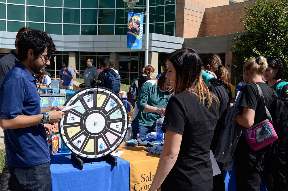Students were invited to spin the wheel at one of the program tables during the Academic Programs and Resource Fair at Jordan Campus on Sept. 6. (Chris Dallof)