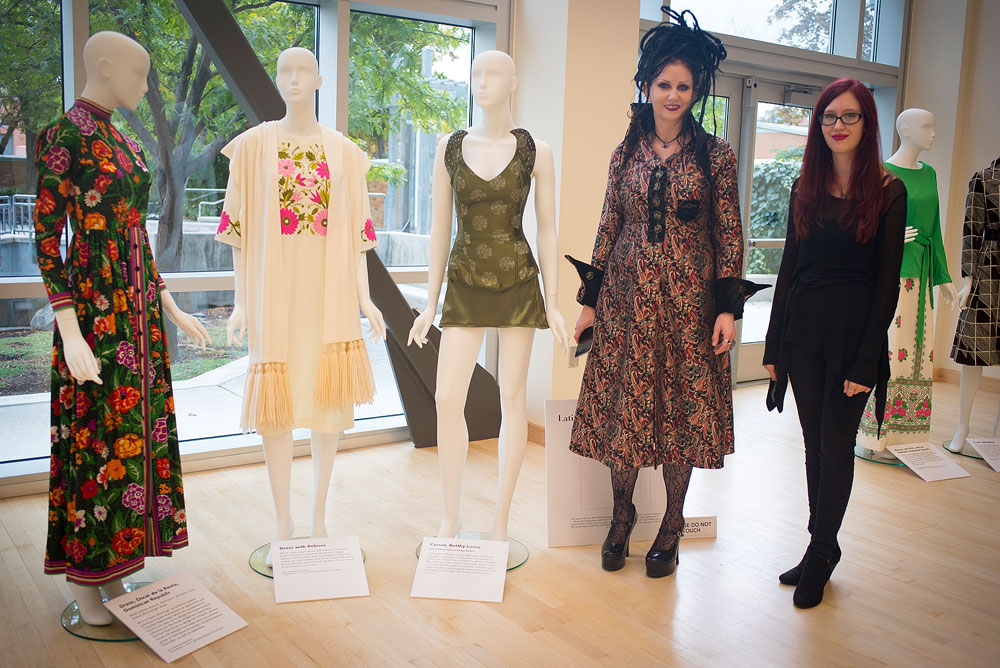 “[The] fashion exhibit [is] inspired by world culture and a collaborative effort with other college departments and two community partners,” says program manager Mojdeh Sakaki. “We own an extensive fashion collection that contains many well-known designers from around the world.”