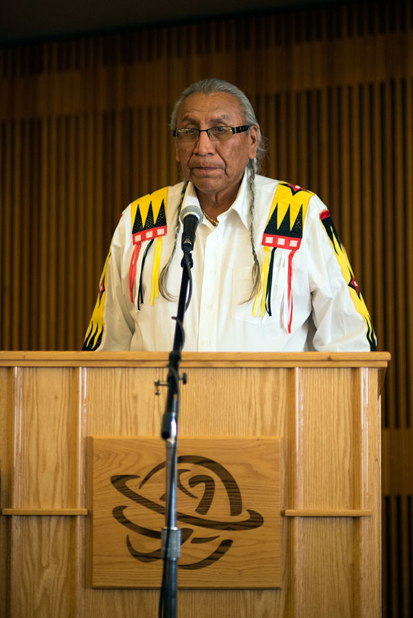 Chief Arvol Looking Horse, spiritual leader of the Great Sioux Nation, spoke to Salt Lake Community College students in the Oak Room on Thursday, Nov. 10.