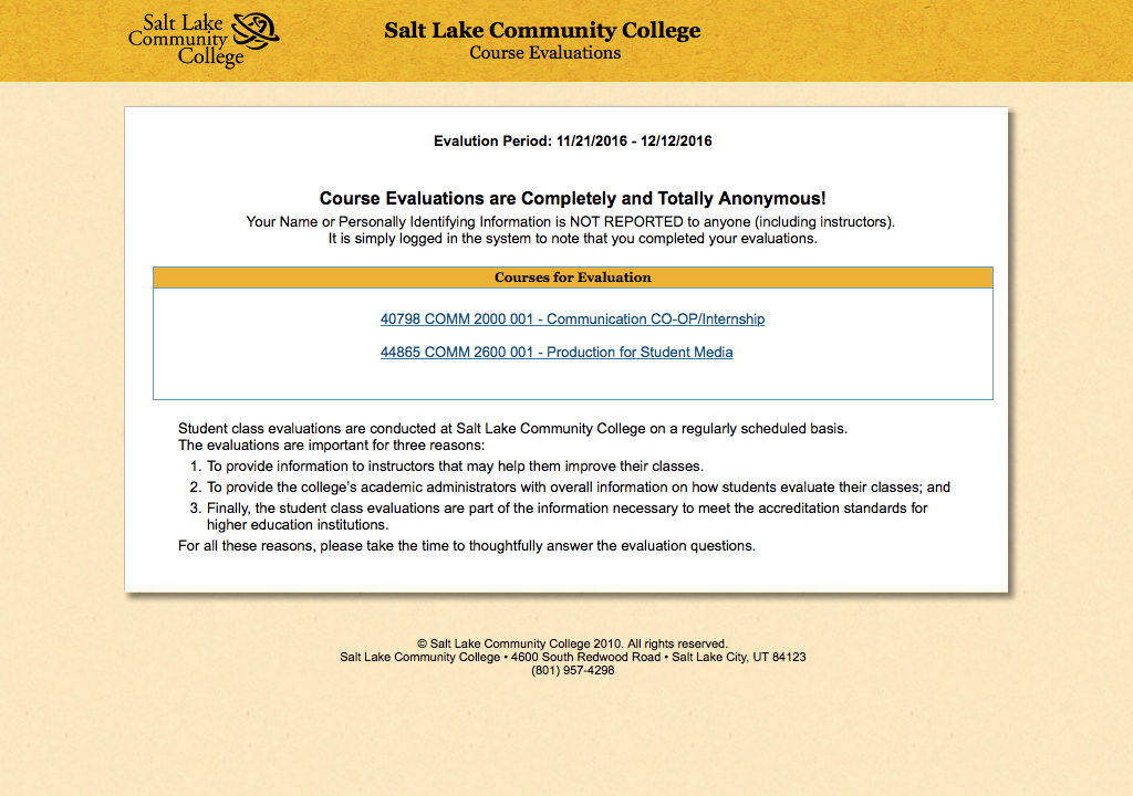 At the end of each semester, Salt Lake Community College students have the opportunity to offer honest feedback about the courses they take.