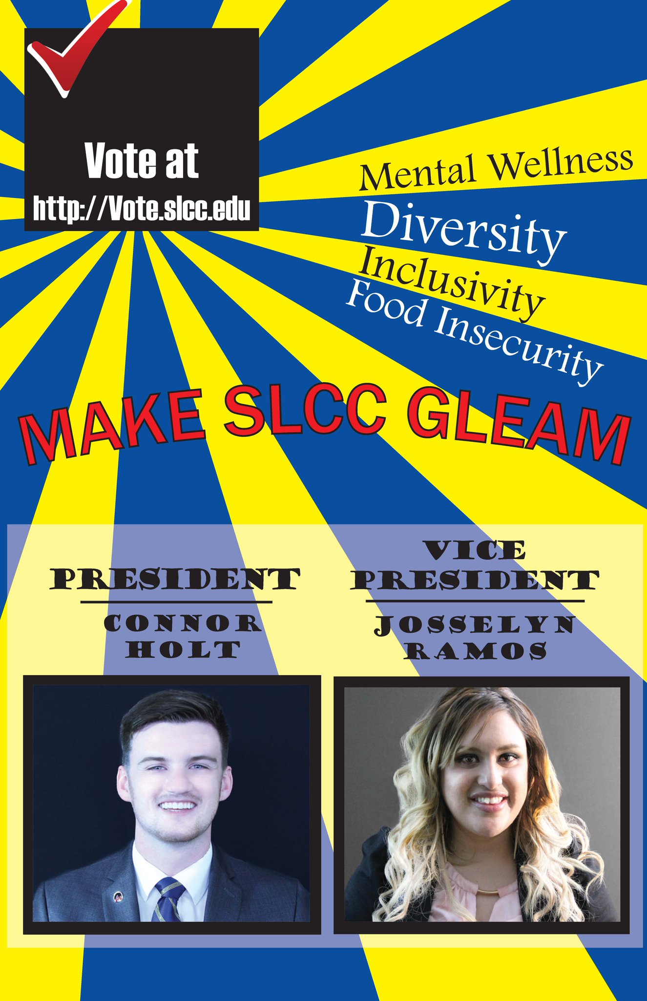 Voting begins today at 8 a.m. and ends Thursday, Feb. 23 at 8 p.m. Any SLCC student can vote online or in person at Taylorsville Redwood Campus, Jordan Campus or South City Campus.