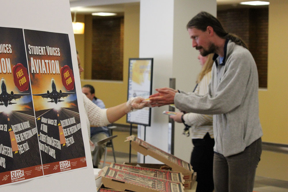 Student Life and Leadership gave out free pizza to students during the Aviation Q and A session. (Allison Hutto)