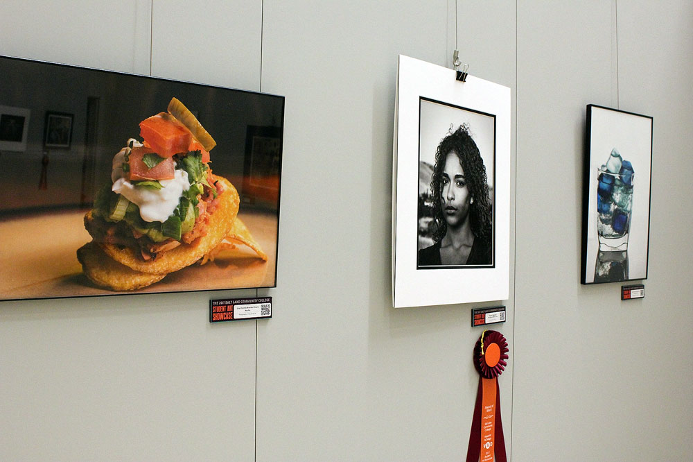 The exhibit opened Friday, March 31 in the South City Campus multipurpose room. Salt Lake Community College students were invited to submit entries in animation, graphic design, illustration, multimedia, photography and web design. Multiple students received awards for their creative works prior to the official opening.