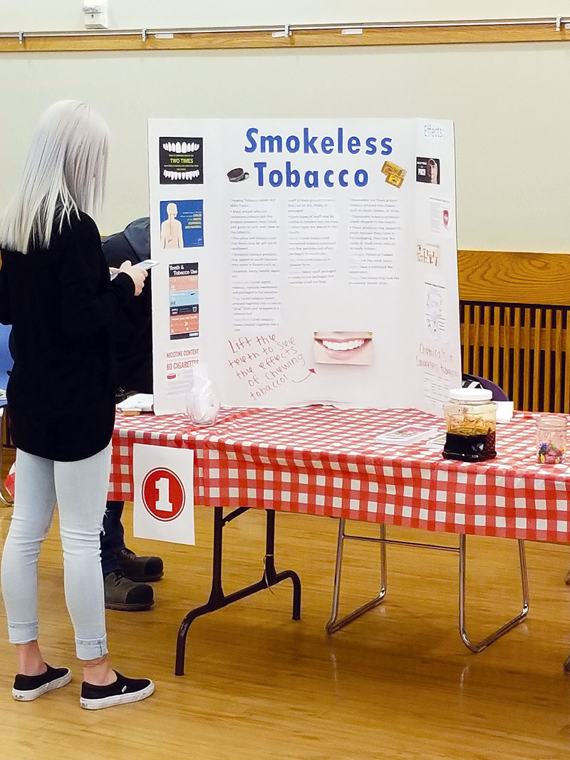 Tonya, a student checking out the displays, said, “I don’t smoke but have a few friends who do. If I can give them some tips for quitting, maybe it will help them.”