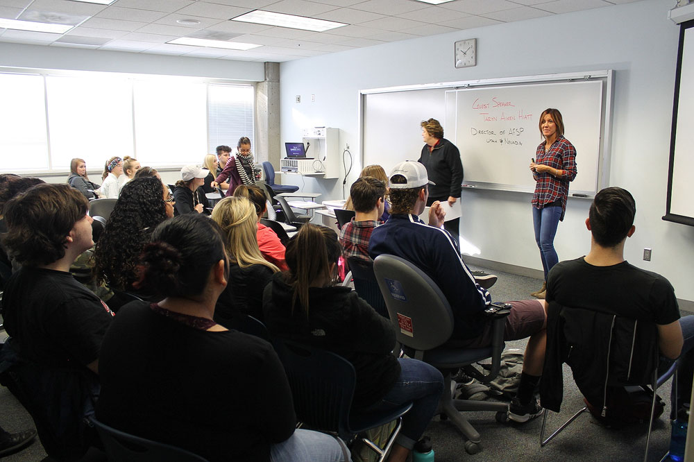 The room was filled with students interested in hearing what guest speaker Taryn Aiken Hiatt, Director of the American Foundation for Suicide Prevention in Utah and Nevada, had to say about such a tough subject.