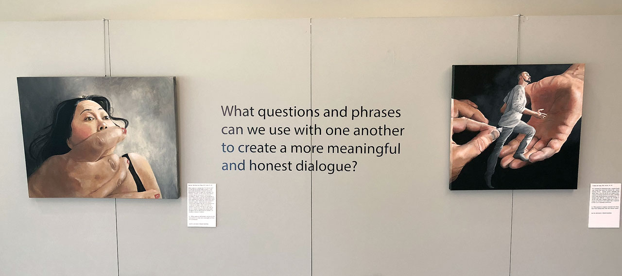 Means says the context for her artwork is a “removal of the faces people with mental health impairments wear, in an attempt to show their true emotions and feelings.” Along with the paintings were thought-provoking questions, to allow the audience to join in this mental health dialogue on their own.