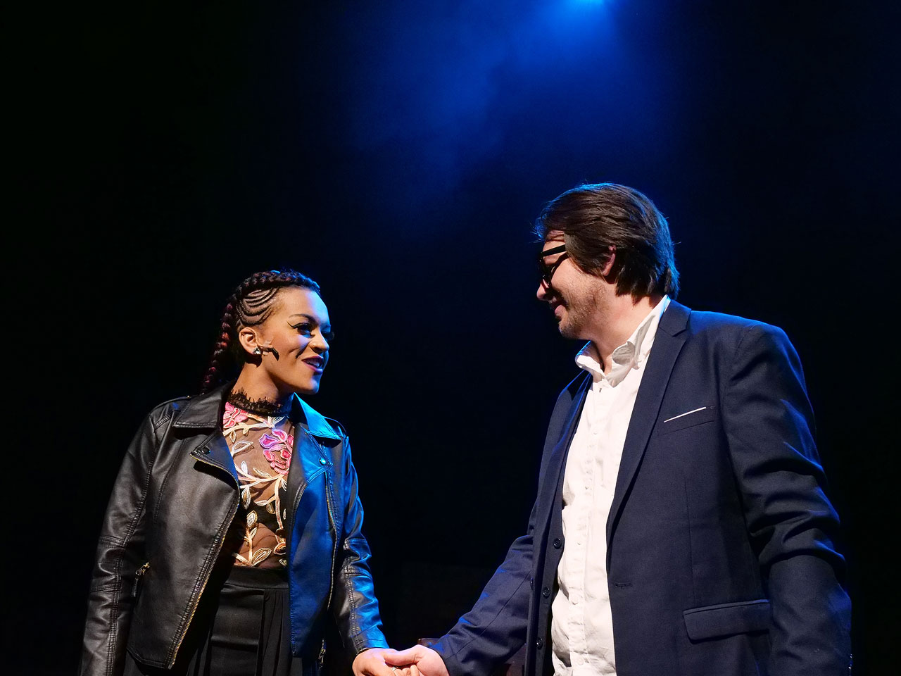 Man 1 and Woman 2 were the bulk of the characters, but that doesn’t mean the actors for Aaron and Casey didn’t face their own challenges. Michael Scott Johnson, who played Aaron, had to convince the audience that this plain, seemingly boring stock broker could hold his own against the fiery Casey.
