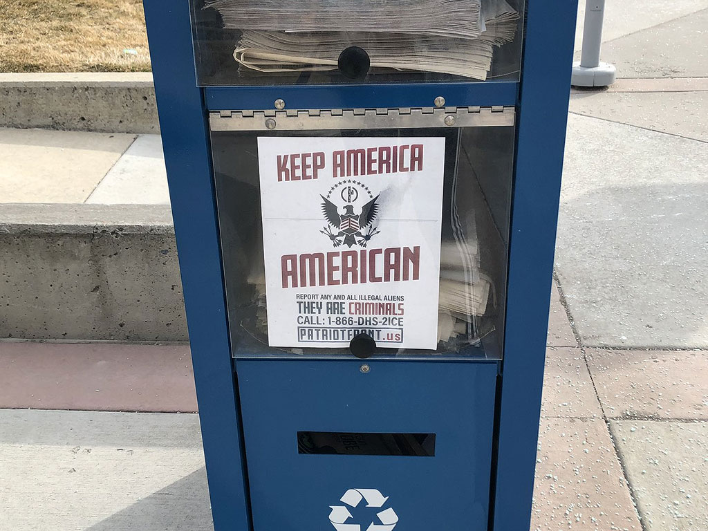 The fliers were distributed by the white supremacist group Patriot Front, calling for students to “Keep America American” and report any illegal immigrants to Immigration and Customs Enforcement.