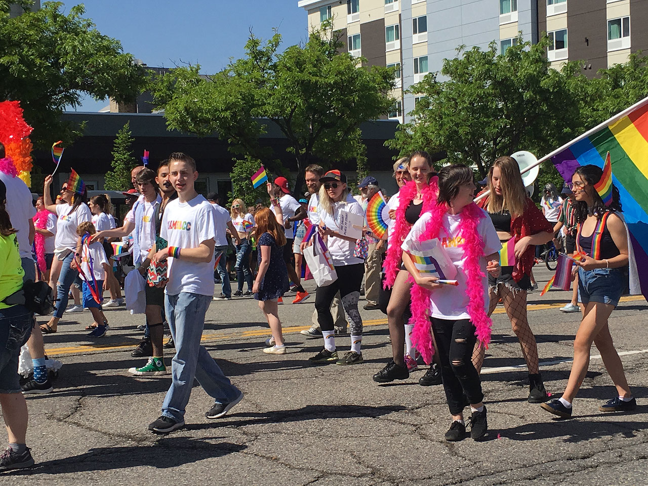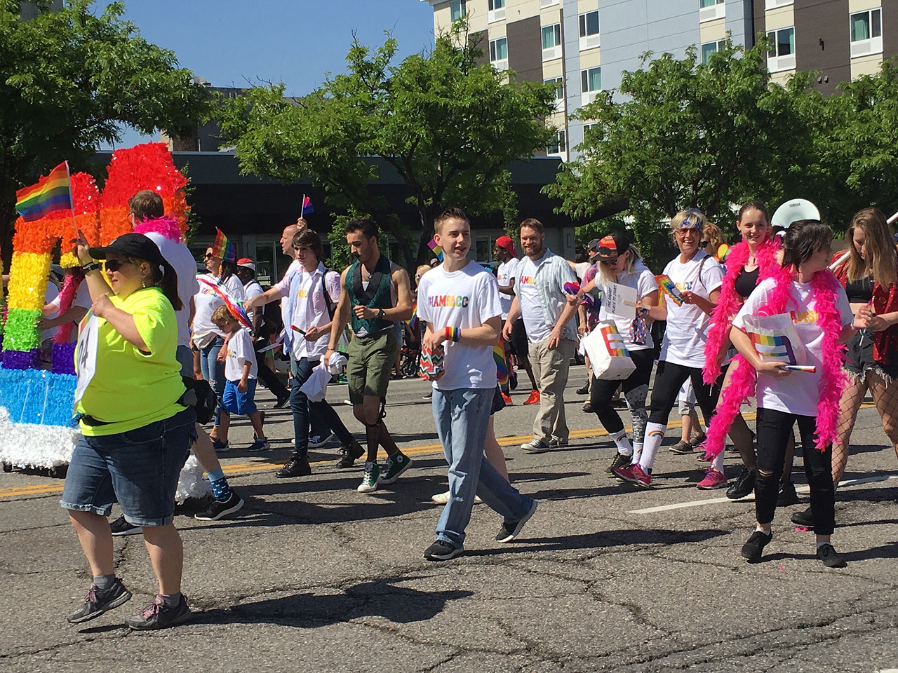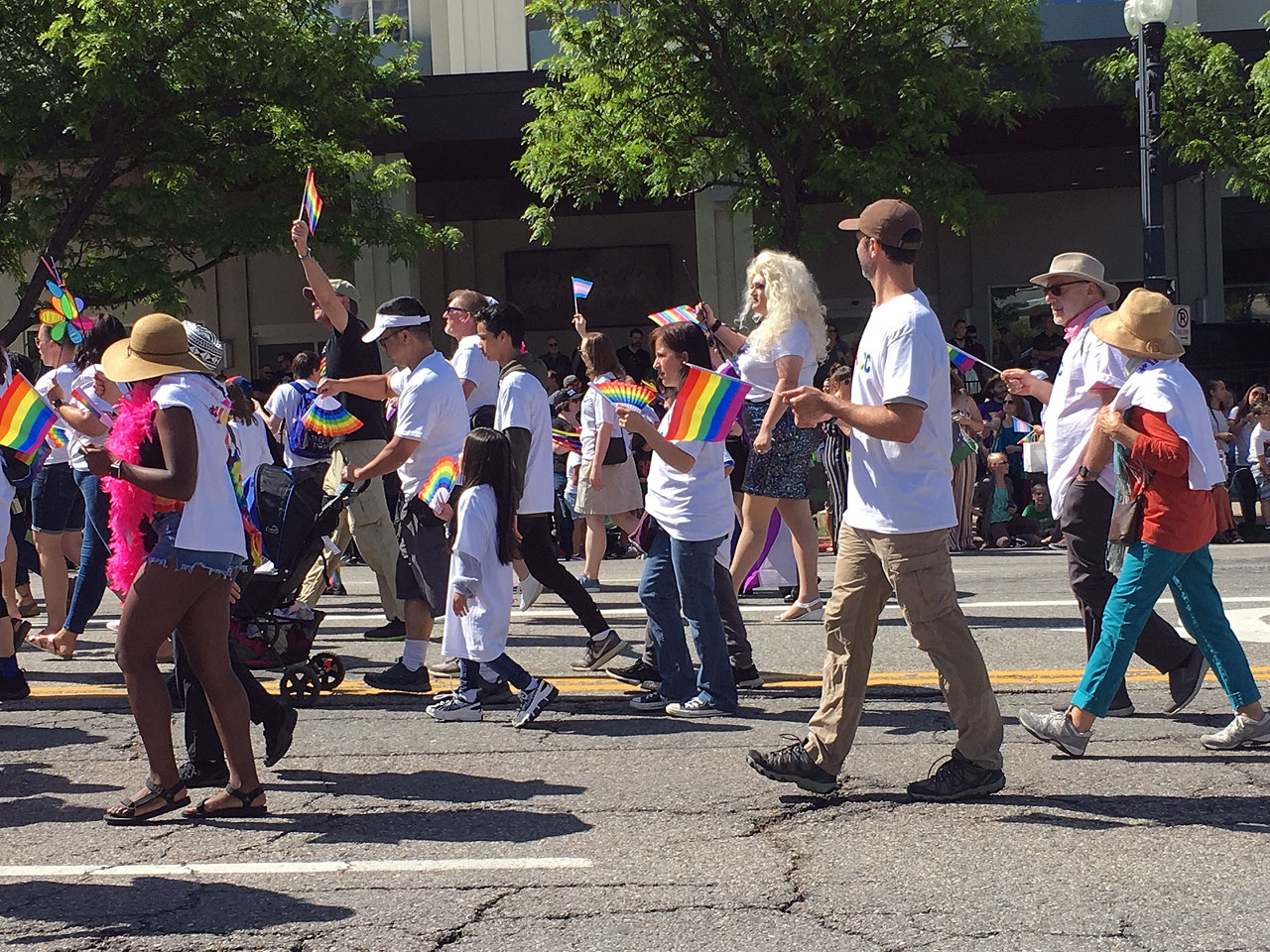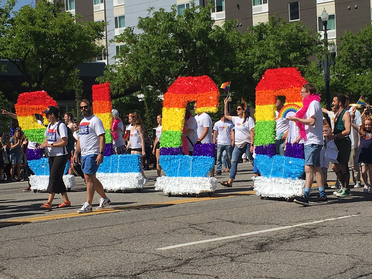 From the dancing go-go boys riding on a unicorn-themed float to the legion of PFLAG (Parents and Friends of Lesbians and Gays) members toting long pencil-shaped balloons and marching to their own beat.