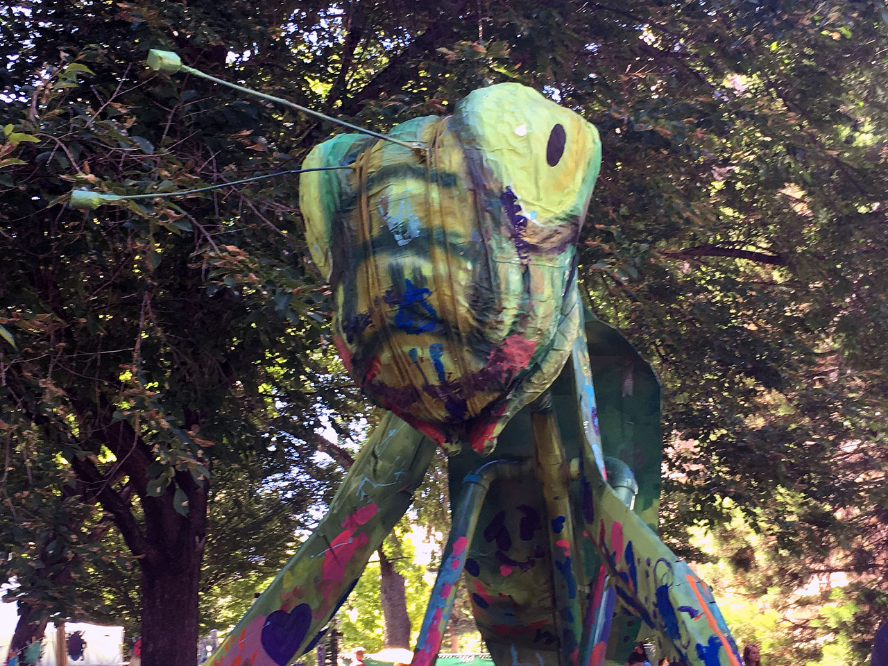 The performers operated inside large dinosaur costumes and managed to interact with the crowd and “eat” from the trees while balanced on stilts that made them nearly 20 feet tall. The costumes are made from scaffolding, complete with a sound system that plays mystical soundscapes and dinosaur roars.