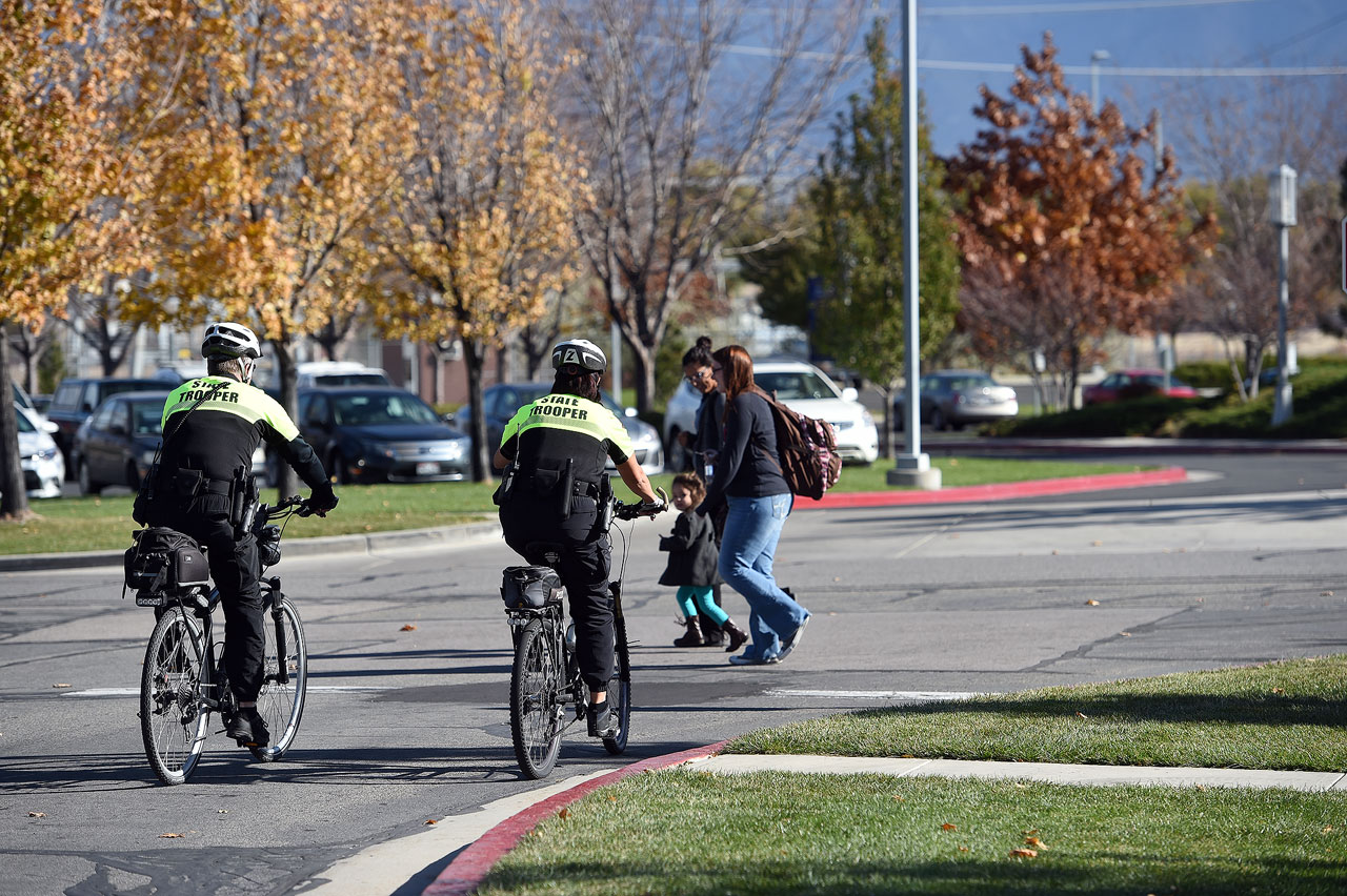 “One of the biggest things that I try to talk to people about is we all kind of have to be on the safety team,” says Lt. Jalaine Hawkes of the Utah Highway Patrol. “I only have so many troopers [and] I can only be on in so many places at one time, so I can’t know everything that’s going on campus. I think it’s very important for students to be observant … be aware of their surroundings.”
