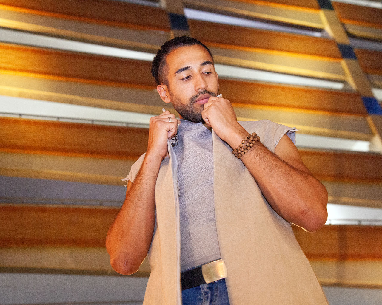 Leo Weffer models a vest he created. Weffer is a student in the Salt Lake Community College Fashion Institute. (Gina Portugal)