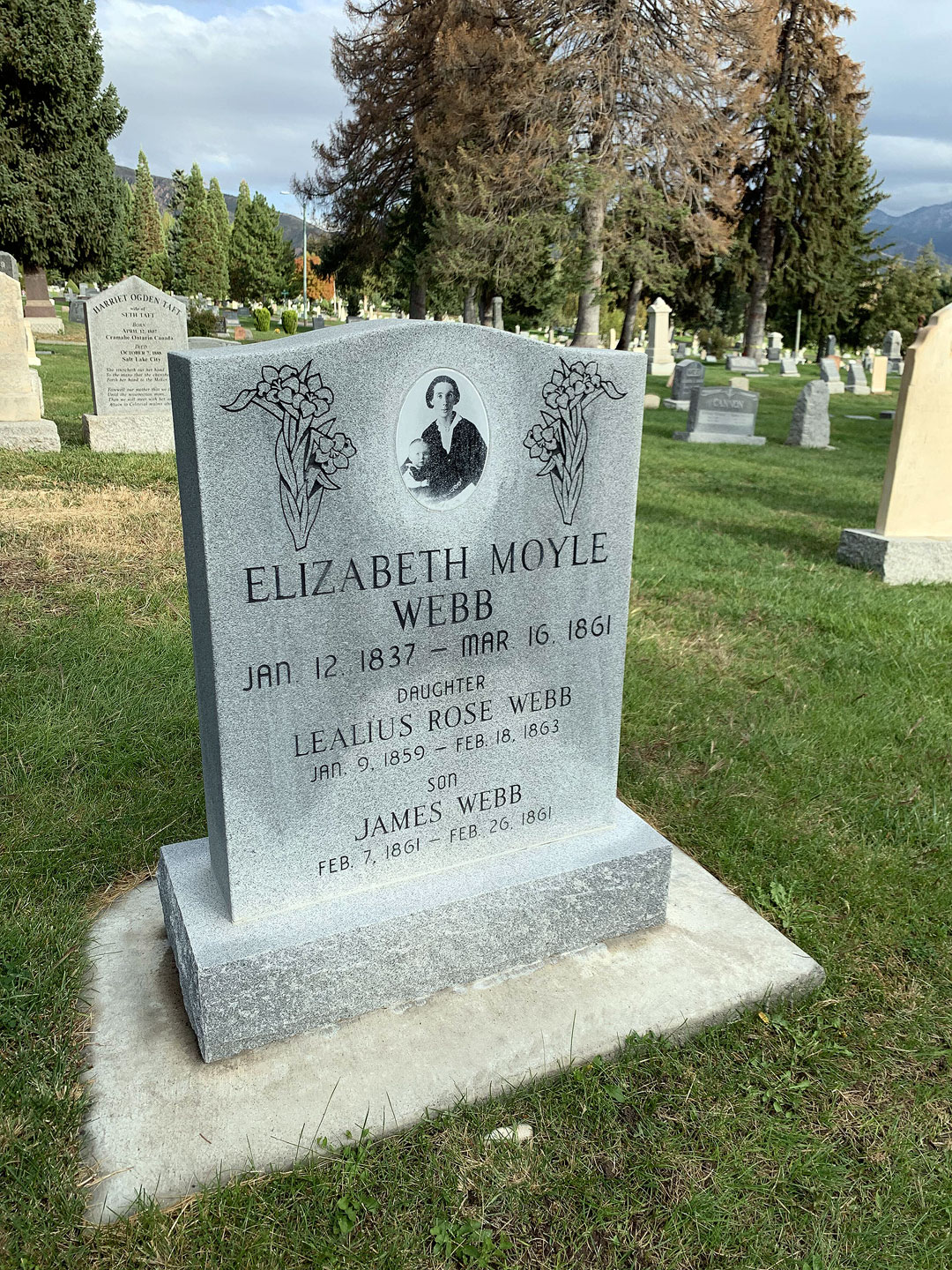 The gave marker of Elizabeth Moyle Webb in the Salt Lake City Cemetery. Approximately 120,000 people are buried in the cemetery. (Sadie Slikker)
