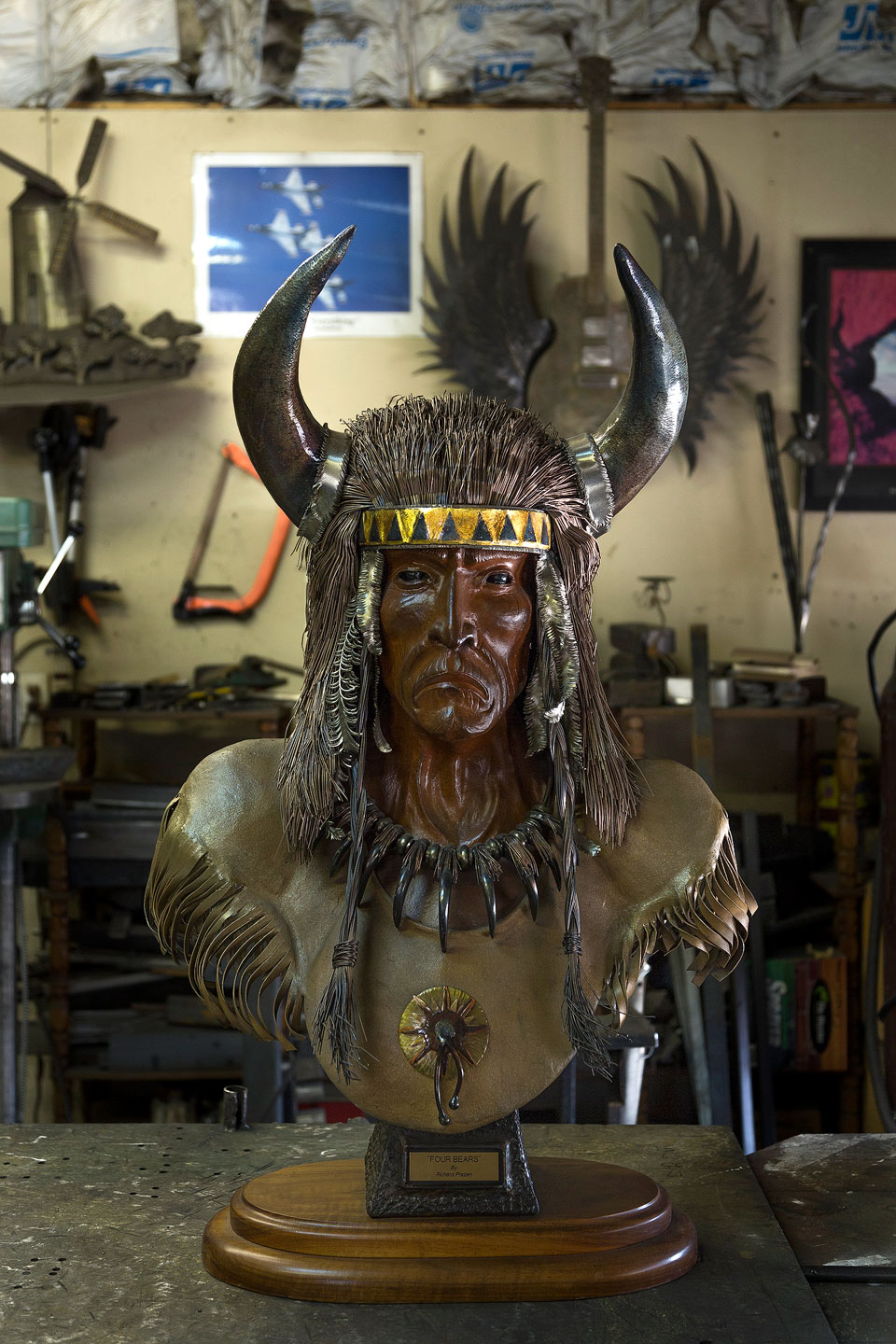 “Four Bears” by Richard Prazen. The sculpture is based on George Catlin’s painting of Four Bears, a chief of the Mandan tribe. The sculpture is made of steel, stainless steel, aluminum, bronze, copper and brass. (Will Samsky)