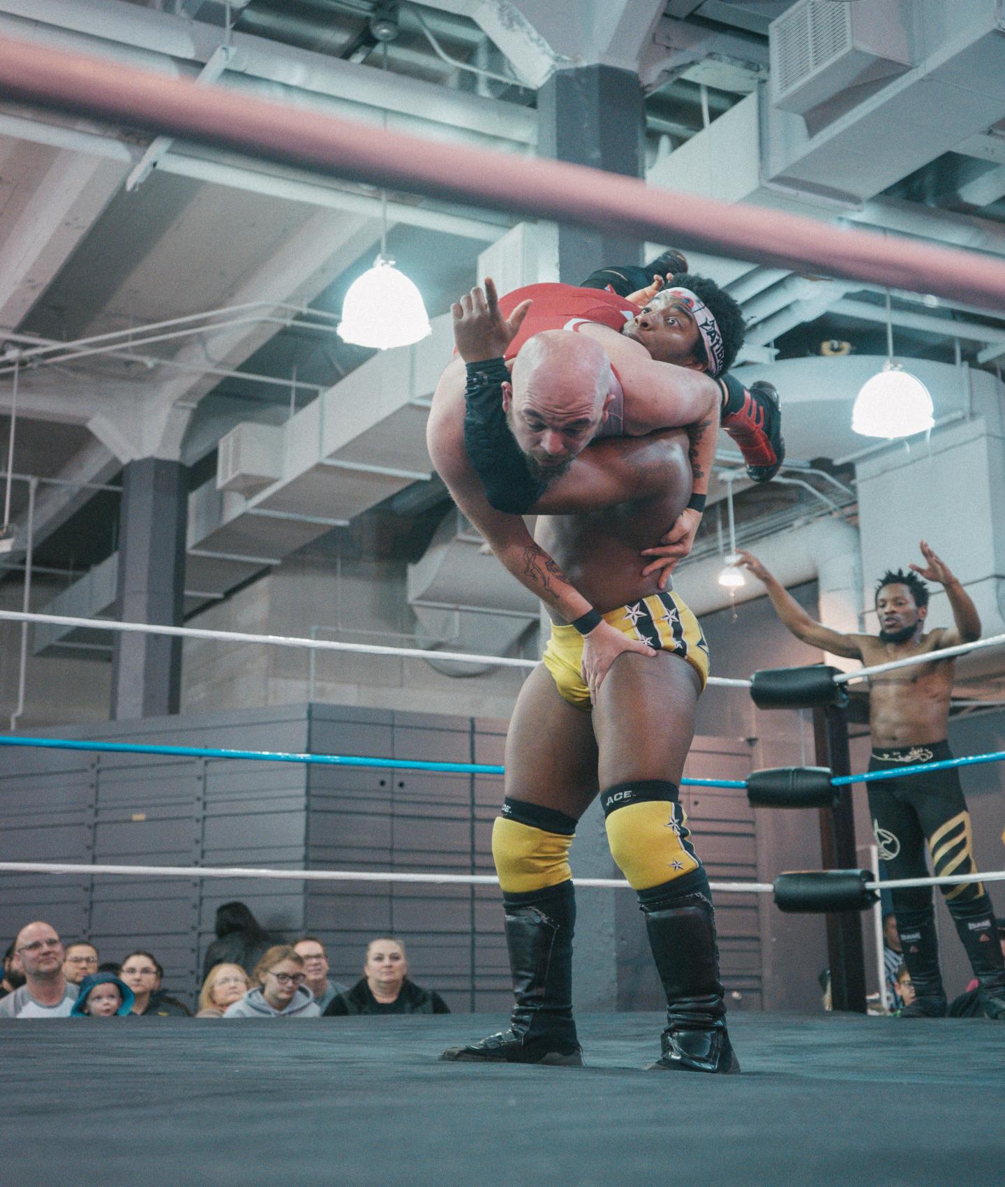 A typical training session at DCW includes warm-ups and cardio to get the body moving. Training then depends on the individual’s previous wrestling experience. These weekly trainings at the arena help create a sense of comradery among its wrestlers.