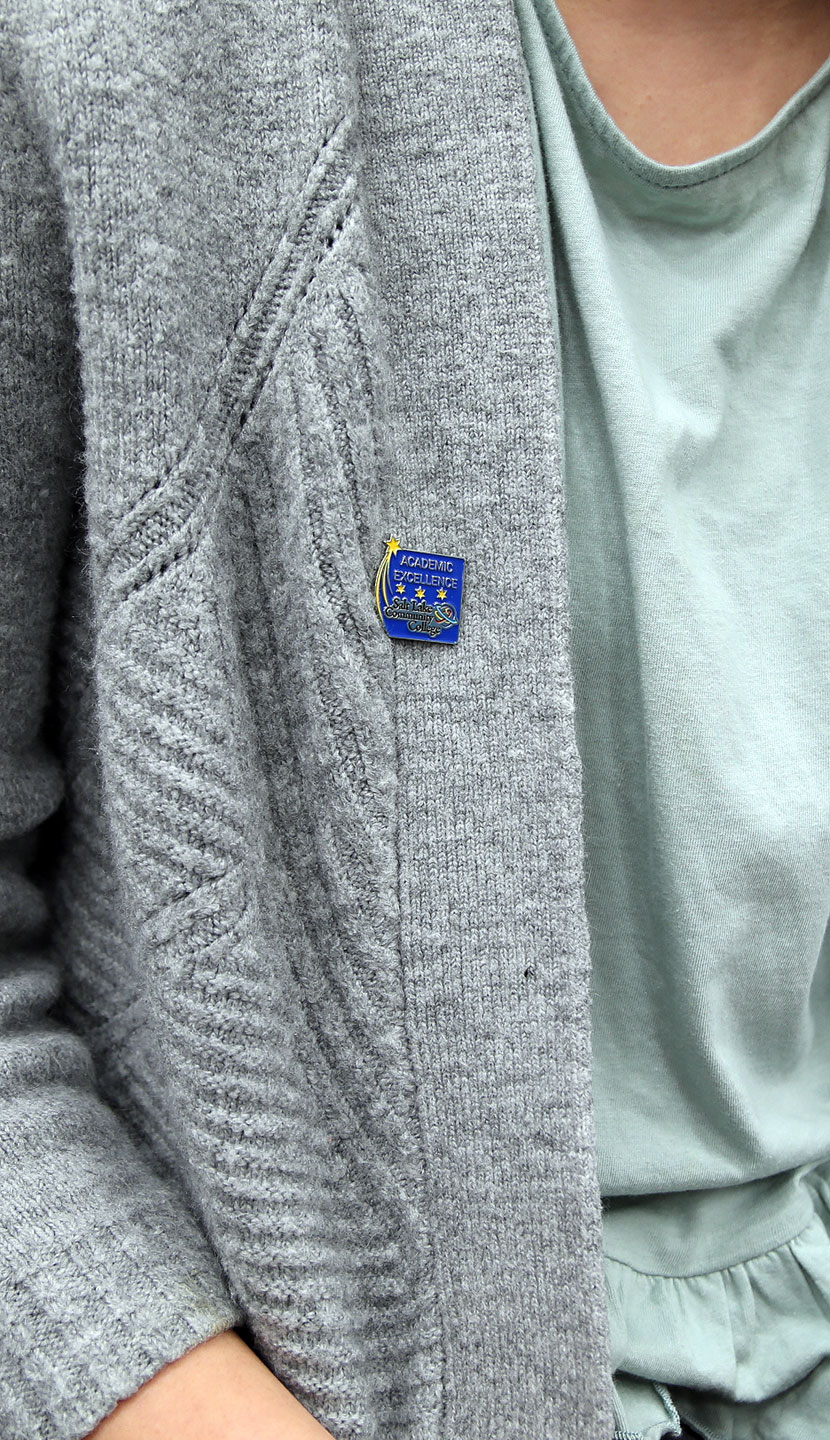 The short program ended with the pinning ceremony, when students rise and their families place a pin on their lapels to commemorate their success.