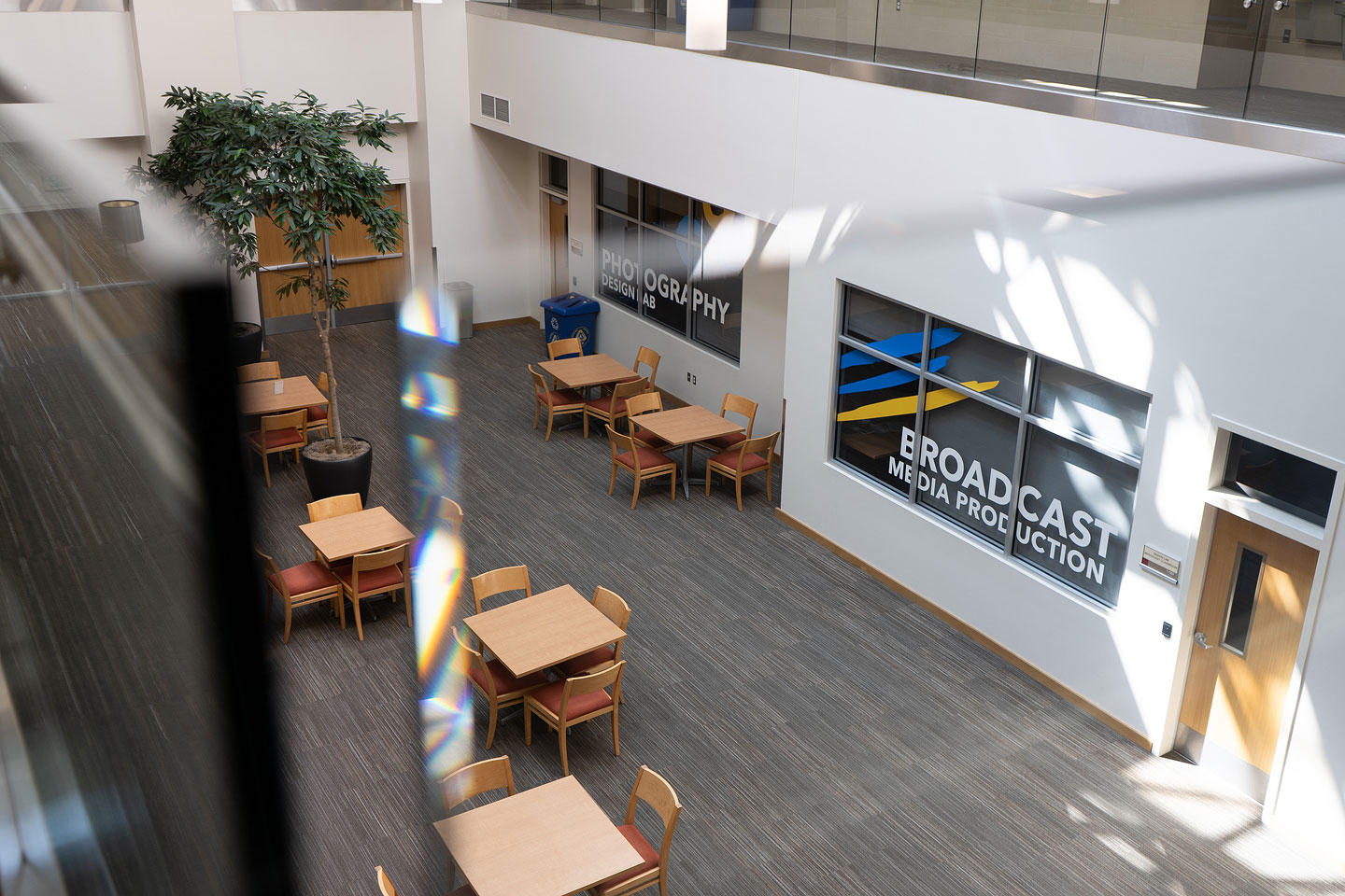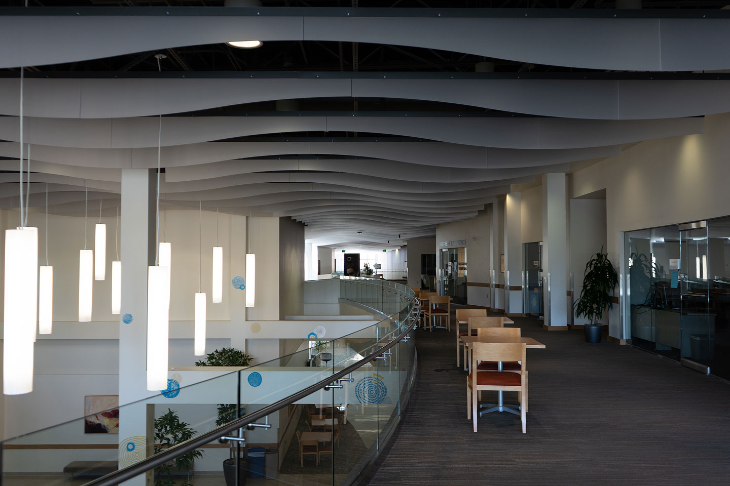 A view of the vacated foyer and study areas on the second floor of South City Campus. Salt Lake Community College transitioned all spring courses to online learning amid the coronavirus pandemic. (Jared Stanger)