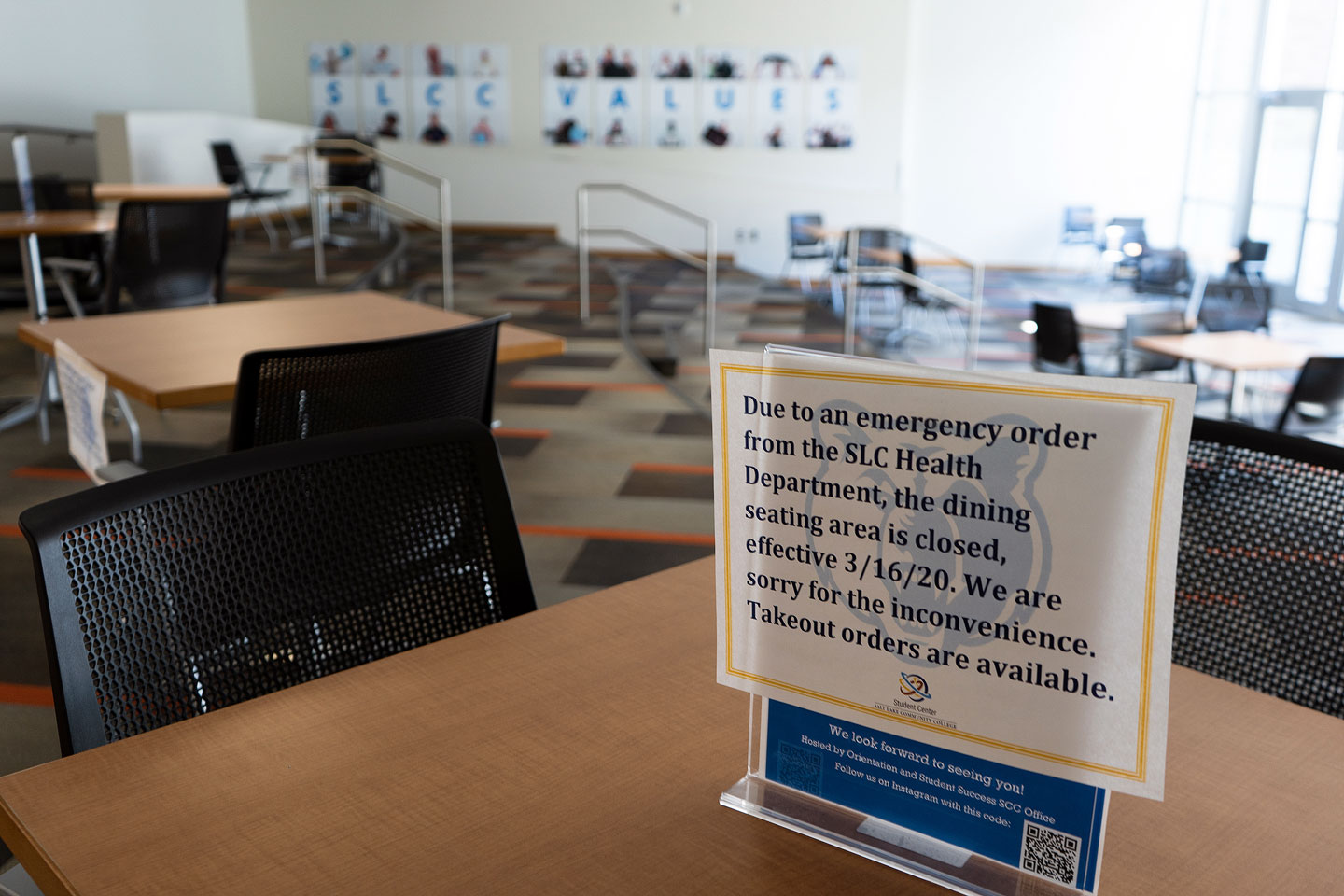As a result of guidelines implemented in response to COVID-19, Salt Lake Community College closed several spaces at South City Campus, including the dining seating area. (Jared Stanger)